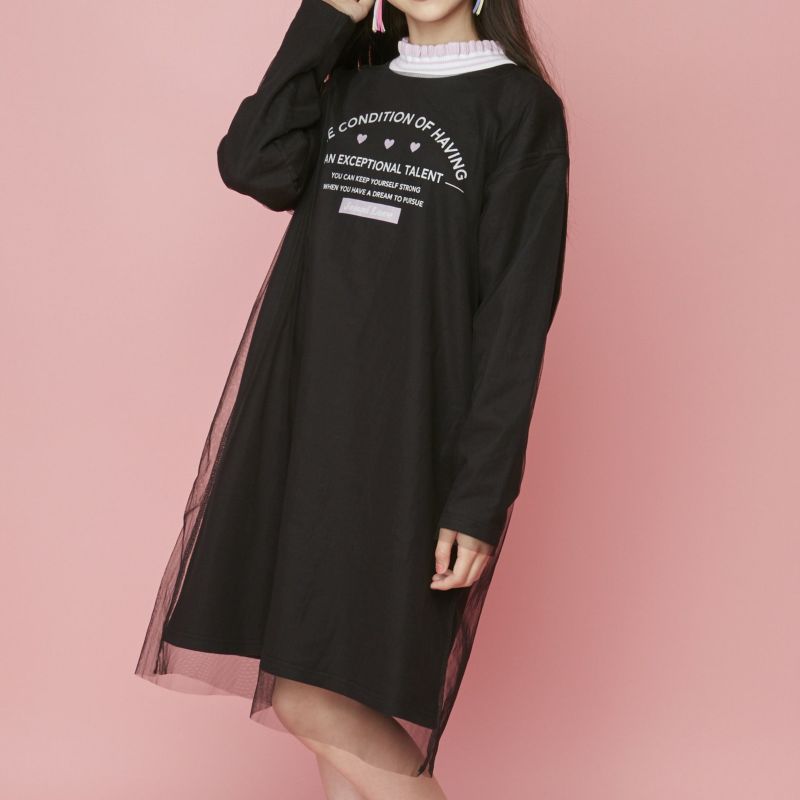 チュールが重なったデザインで、1枚でオシャレに着こなせるワンピ。