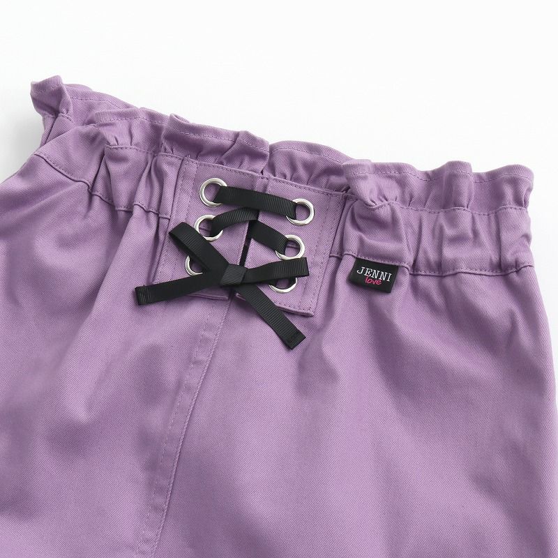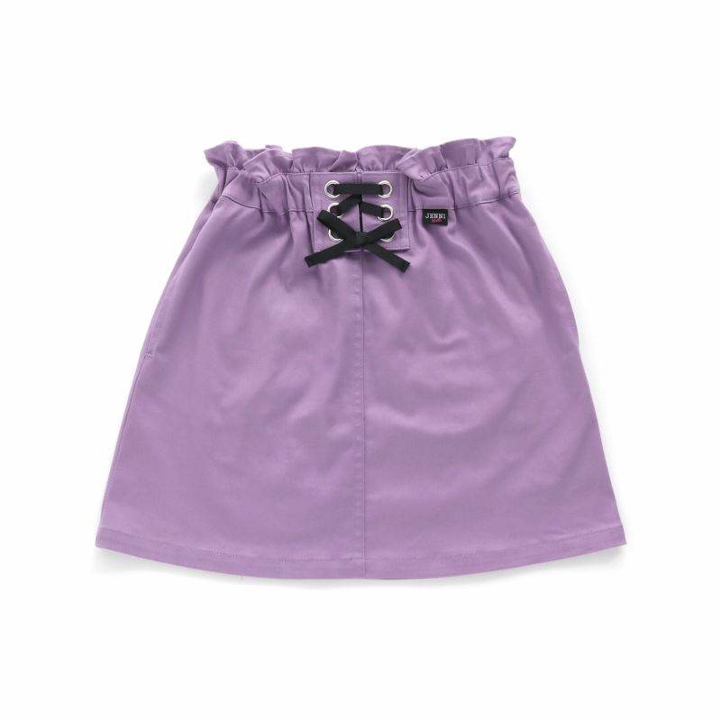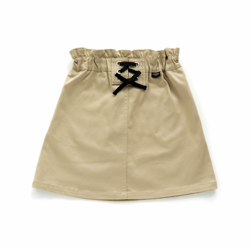 前にレースアップ、後ろポケットに織ネームが付いたスカートは
