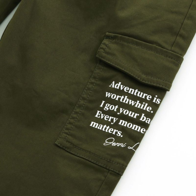 ウエストにはゴムのアジャスター付きで、ボタンで調節が可能です。