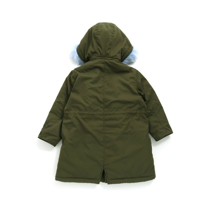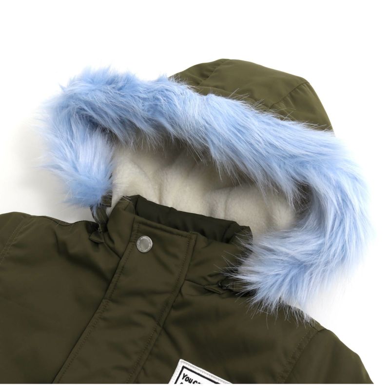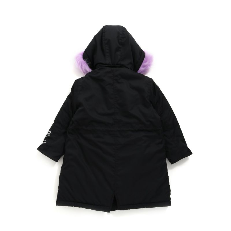[素材]本体:ポリエステル100% 袖裏:ポリエステル100% ボア部分:ポリエステル100% ファー部分:アクリル100% リブ部分:ポリエステル70%、綿28%、ポリウレタン2% 中綿:ポリエステル100%