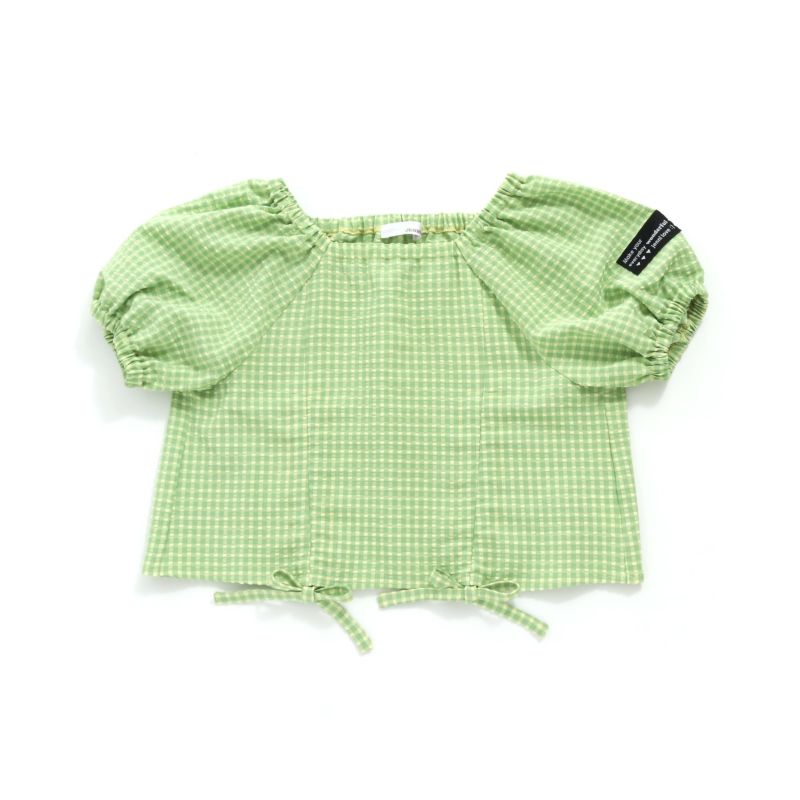 ふんわりとした袖に付いた織ネームがアクセントに。