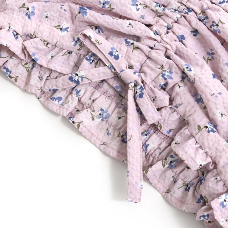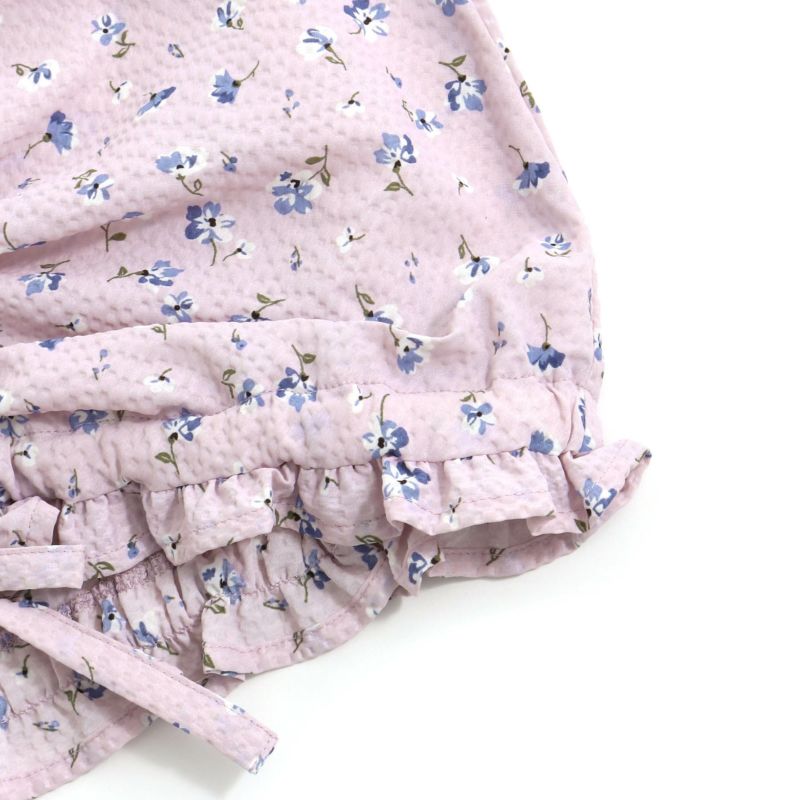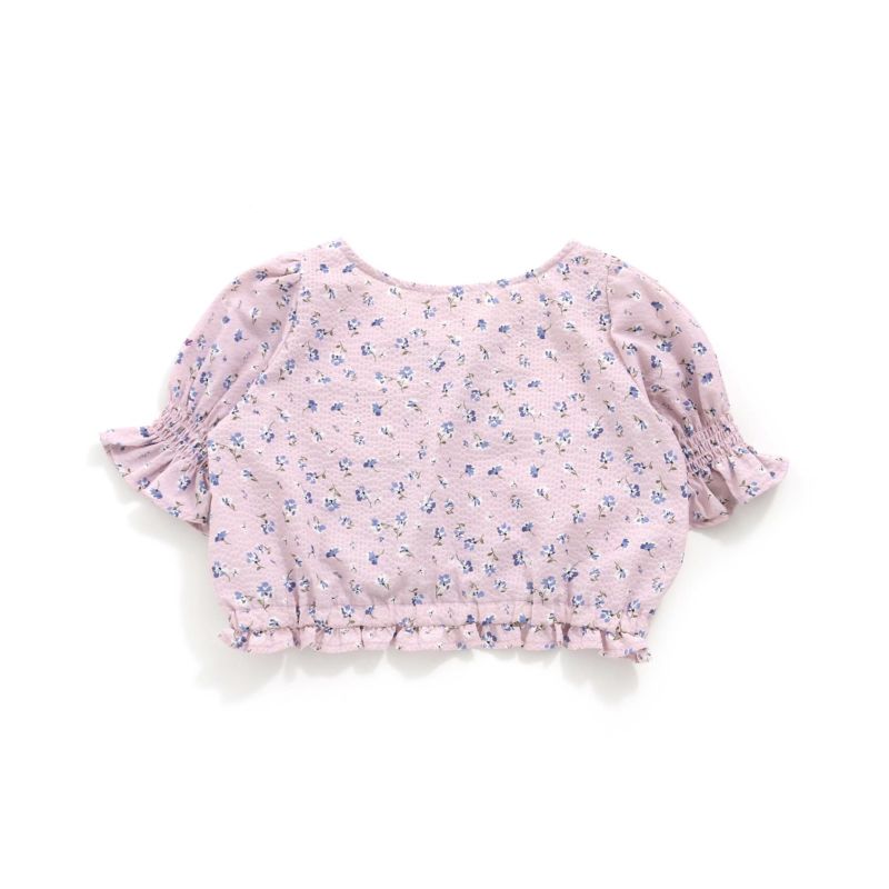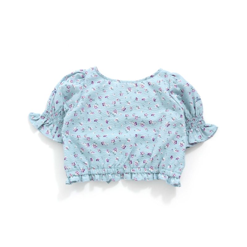 小さな花柄が散りばめられた鮮やかなブラウスは