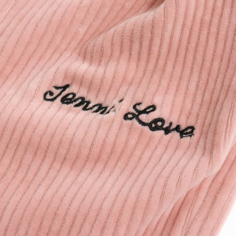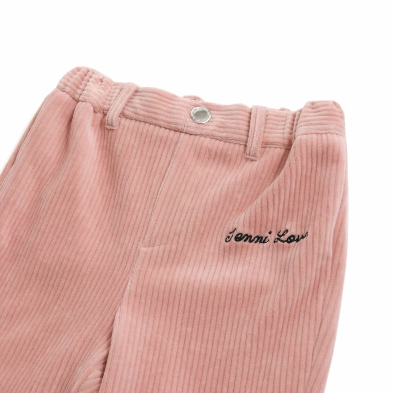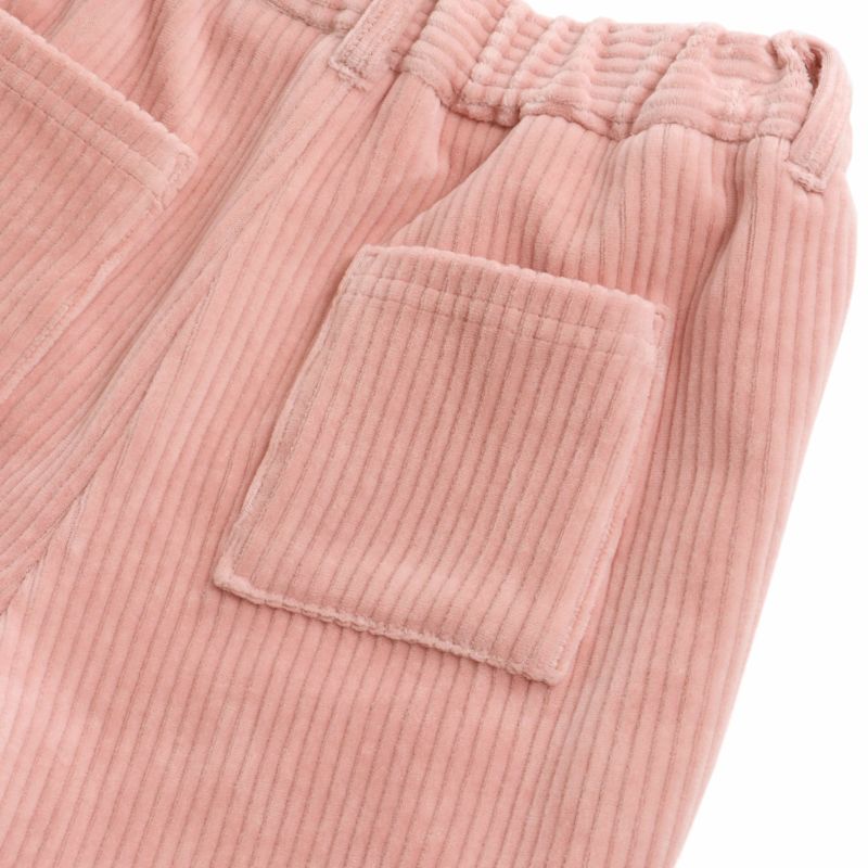 トレンドのコーデュロイパンツも甘いカラーなら一味違った雰囲気に。