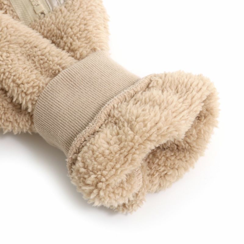 ふっくらとした肉厚なボア素材は、肌触りが良く
