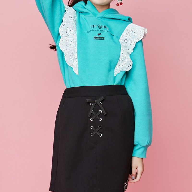 カジュアルなトレーナーもレースの組み合わせで可愛らしい印象に♪