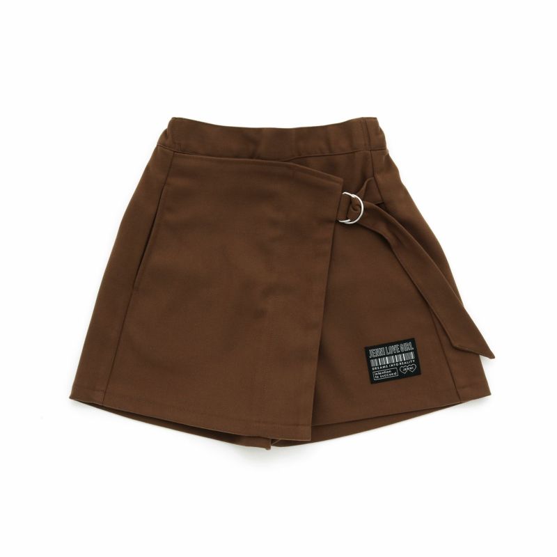 前から見るとアシンメトリーのラップスカート風に見えるおしゃれなシルエット♪