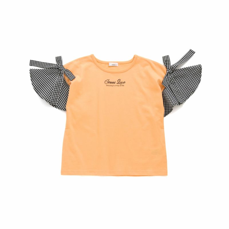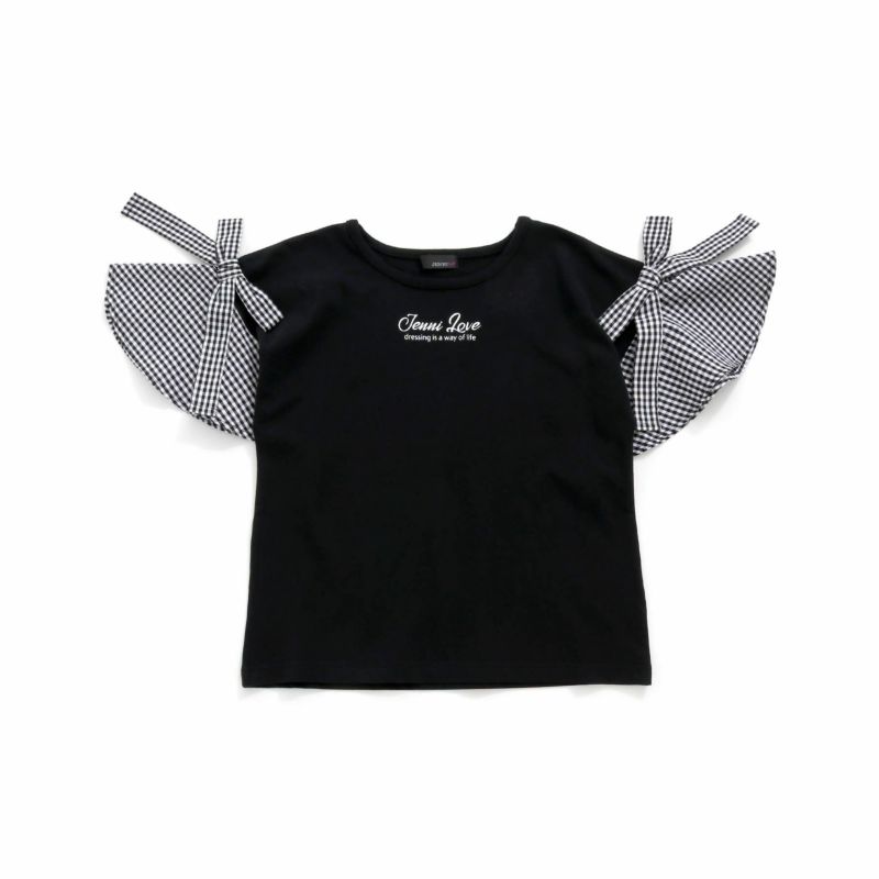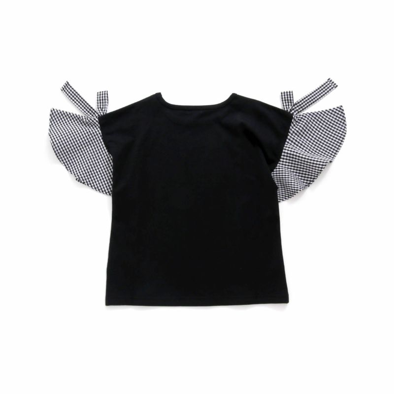 【75%off】ギンガムチェック袖リボンTシャツ
