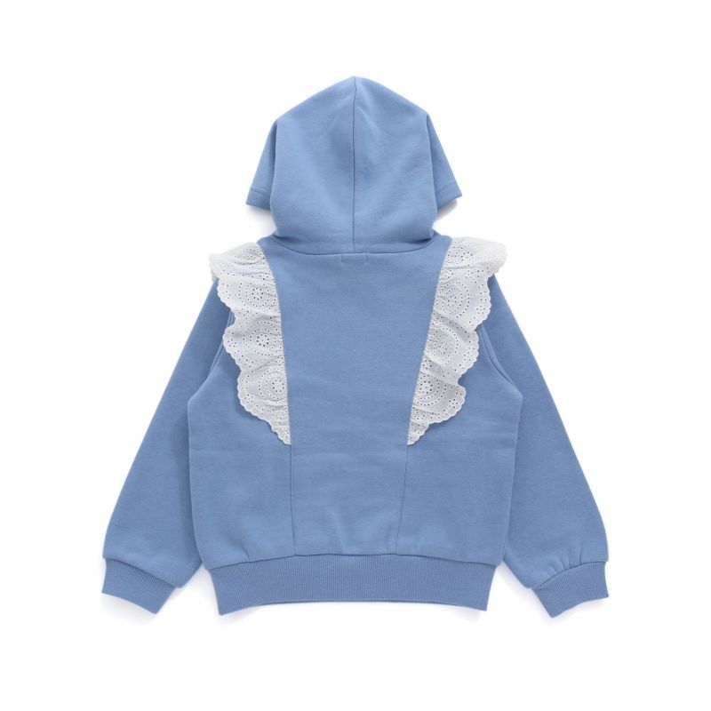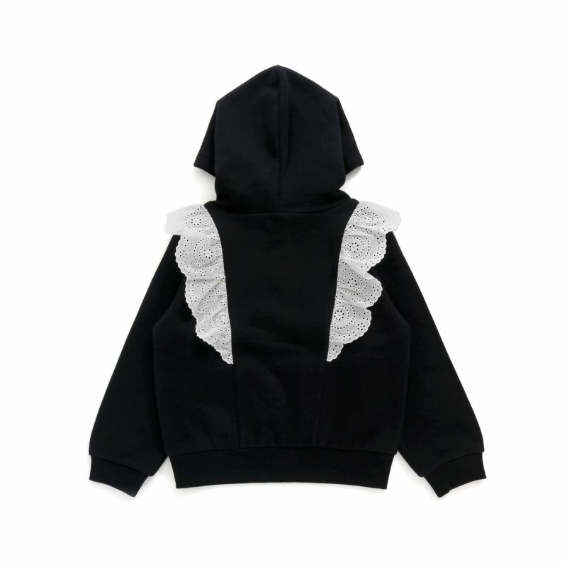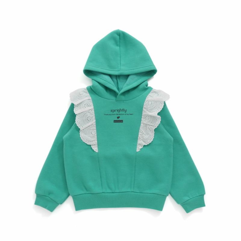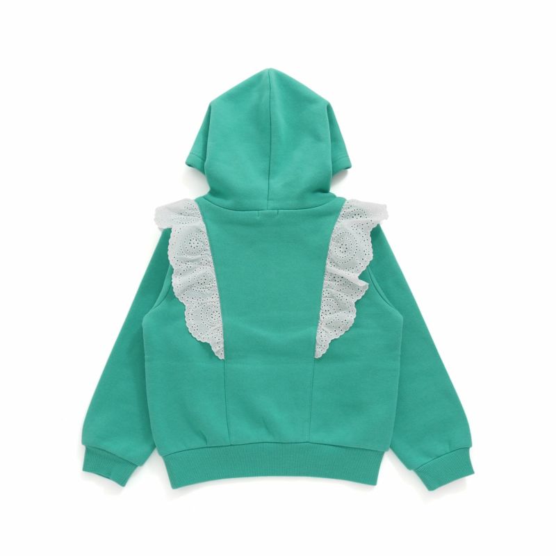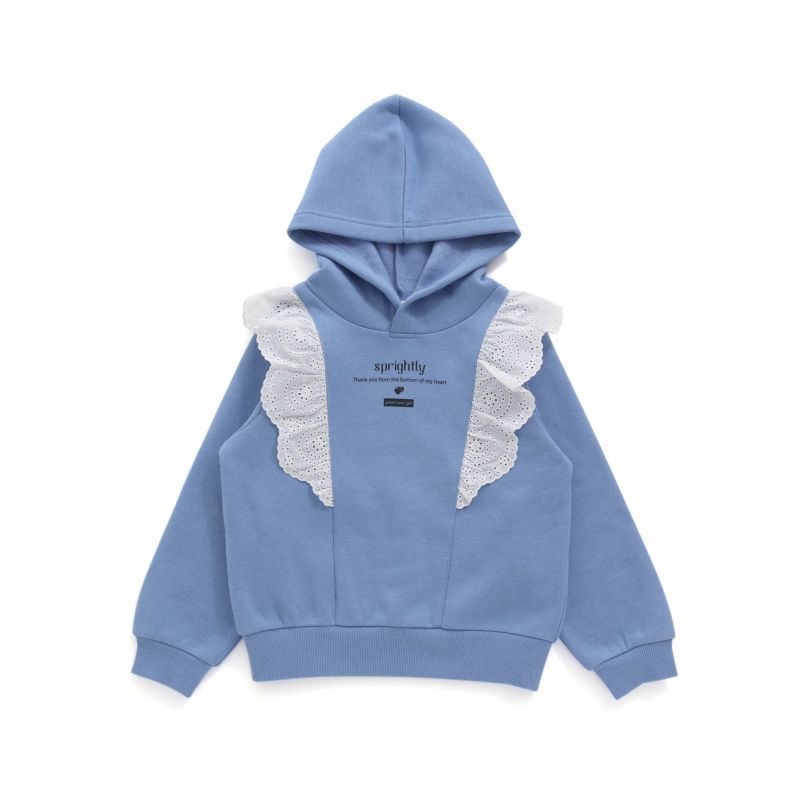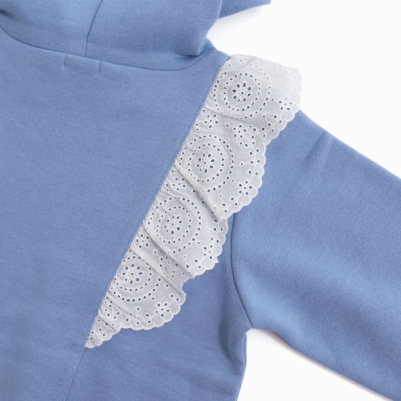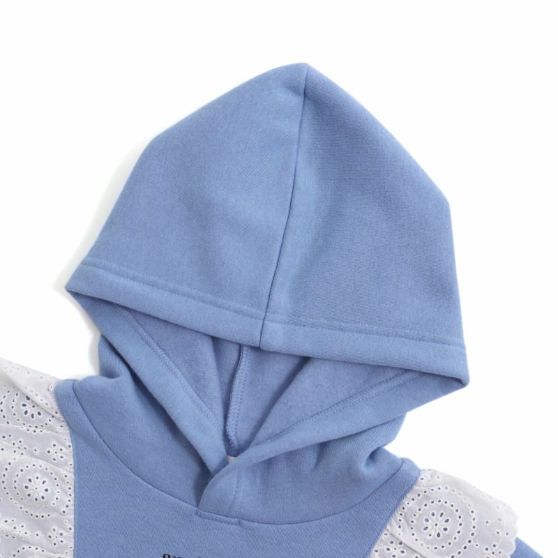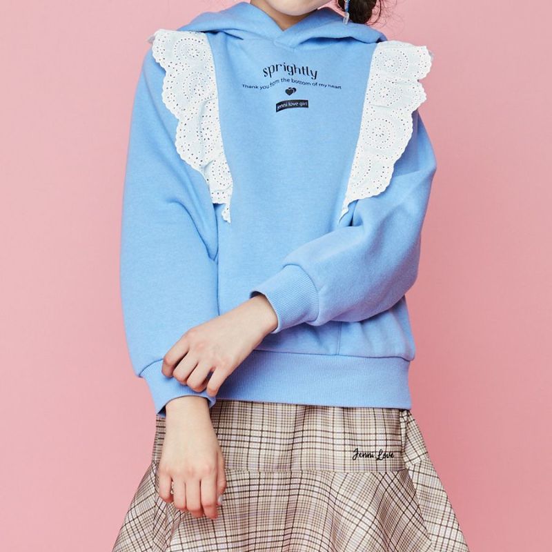 カジュアルなトレーナーもレースの組み合わせで可愛らしい印象に♪