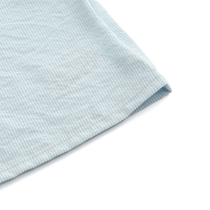 夏らしい素材感とさりげないストライプ柄がサマーコーデにぴったりです。