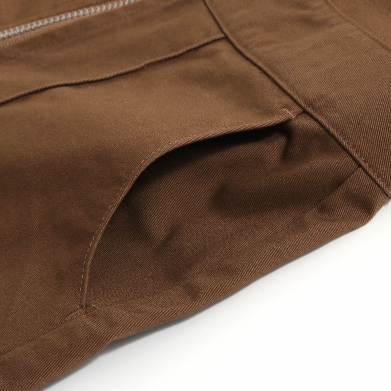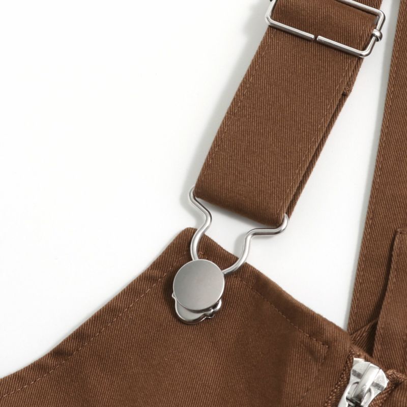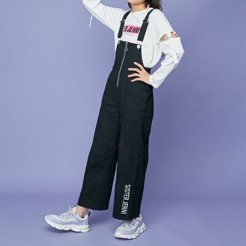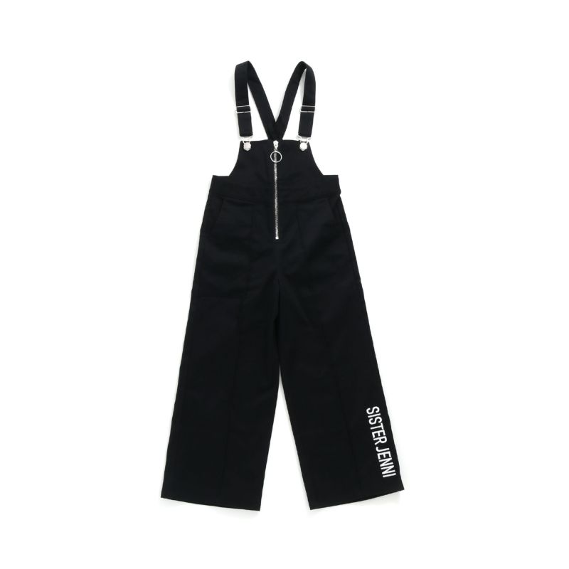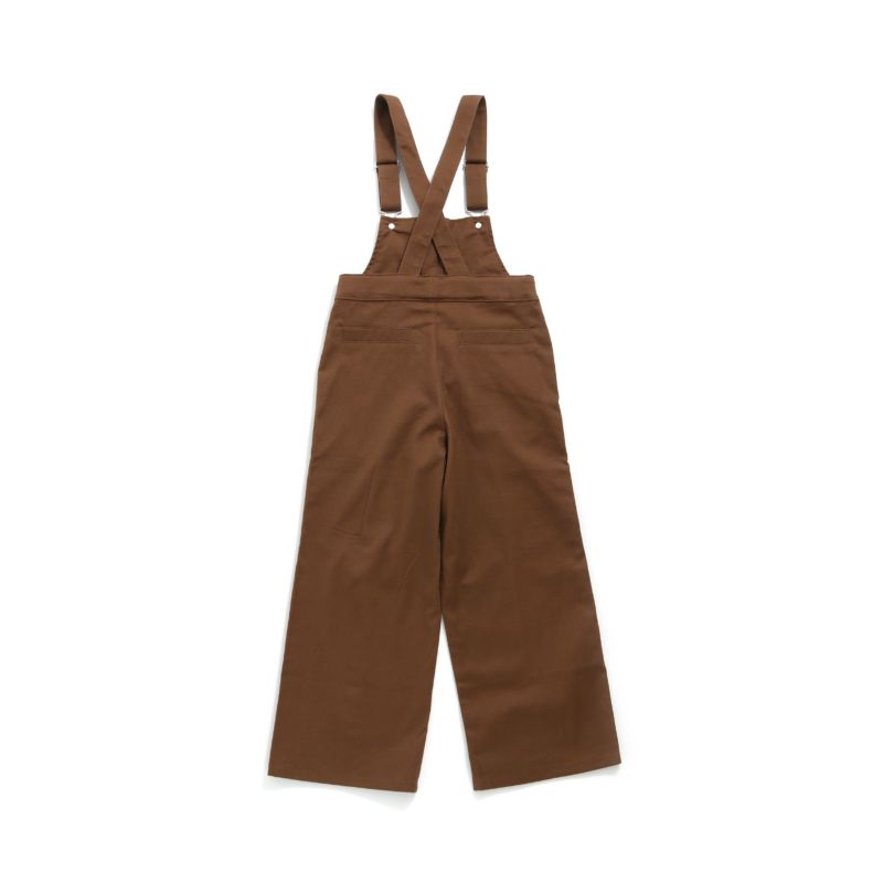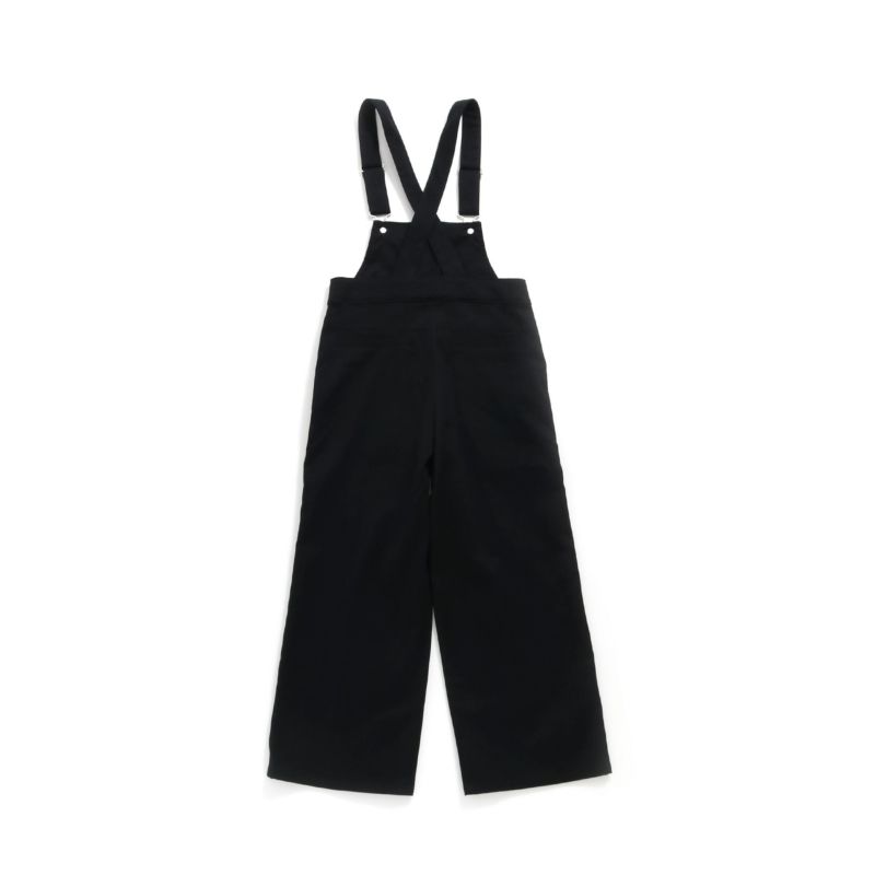 フロント部分はコンパクト、パンツ部分はワイドシルエットなサロペは、