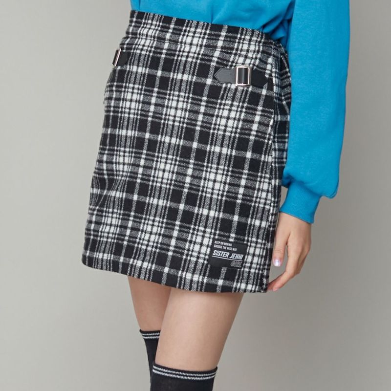サイドにベルトが付いた甘辛なスカートは、シャギー素材で冬感をプラス♪