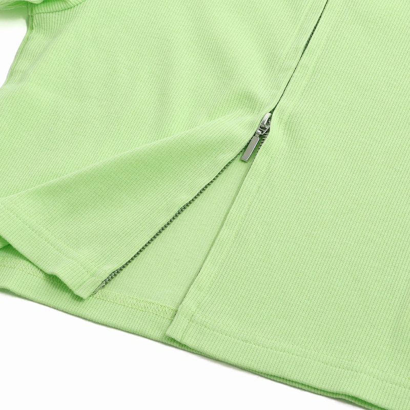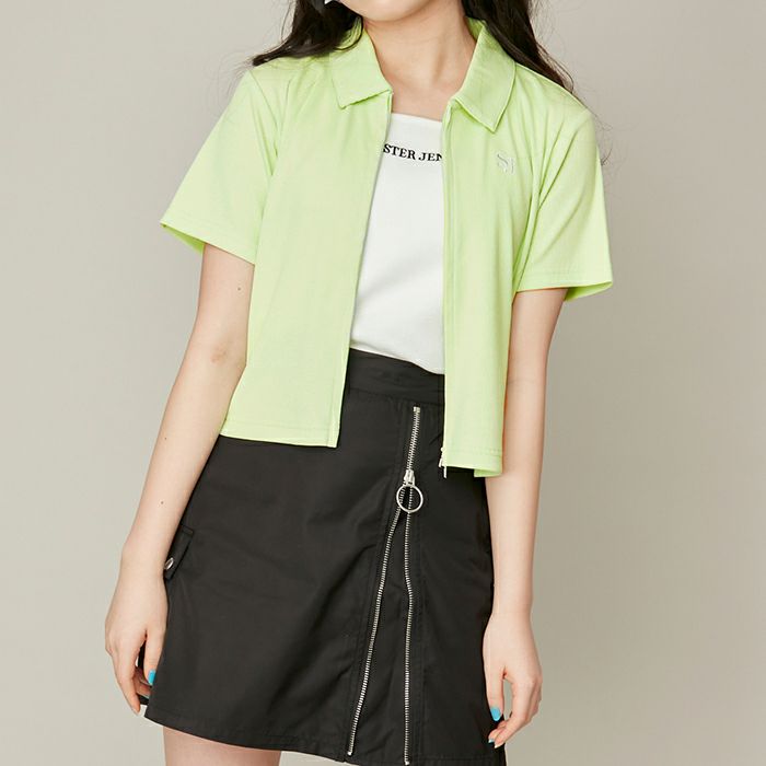 グリーンを購入。 ジップを開けても閉めても可愛いです。 ダブルジップなのでその日のコーデや気分で調整できるのも嬉しいです。 中のタンクトップも色々なコーデに支えてとても重宝しています。
