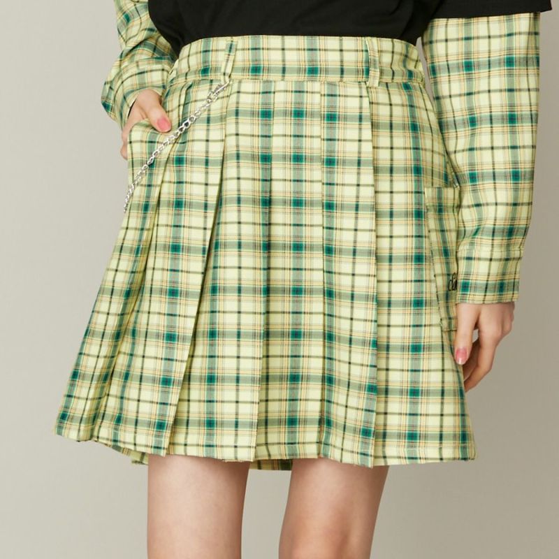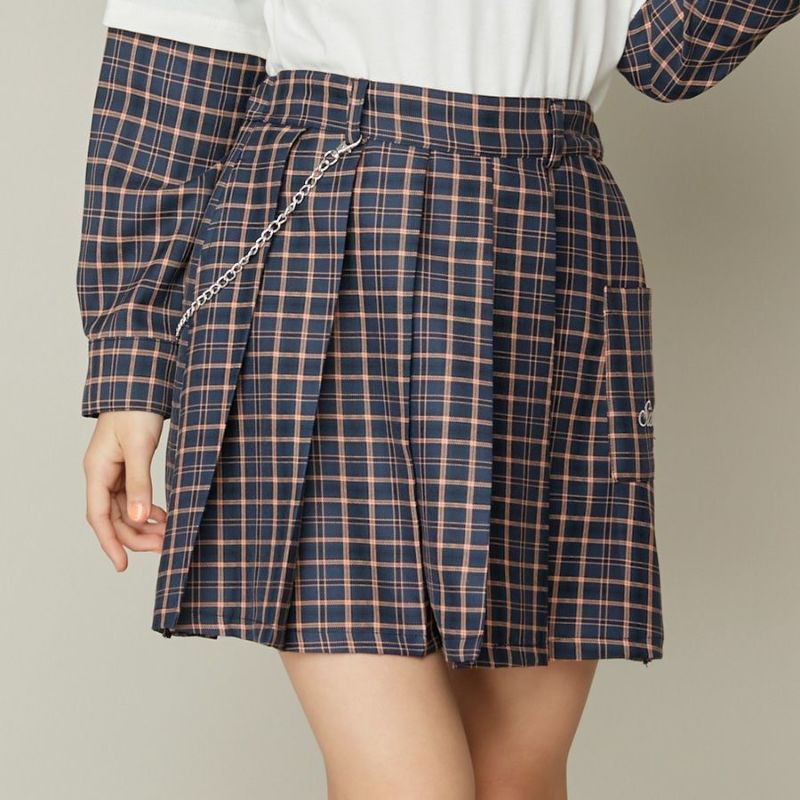 チェーンがついたチェック柄のスカパンは存在感バツグンのイエローとモードなネイビーの2色展開★
