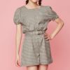 チェック柄とスクエアネックがお上品な印象に。