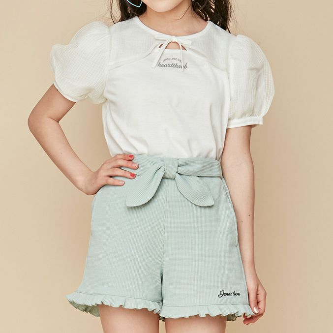[素材]本体・リボン部分:ポリエステル65%、綿35% ボレロ部分:ポリエステル100% リブ部分:ポリエステル63%、綿34%、ポリウレタン3%
