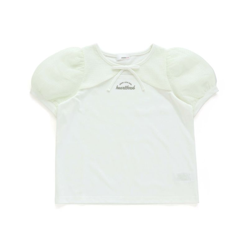 ボリュームのあるパフスリーブが可愛いレイヤード風デザインでシアーチェックのボレロが爽やかな印象に!