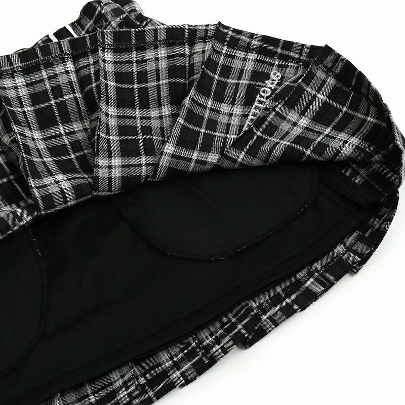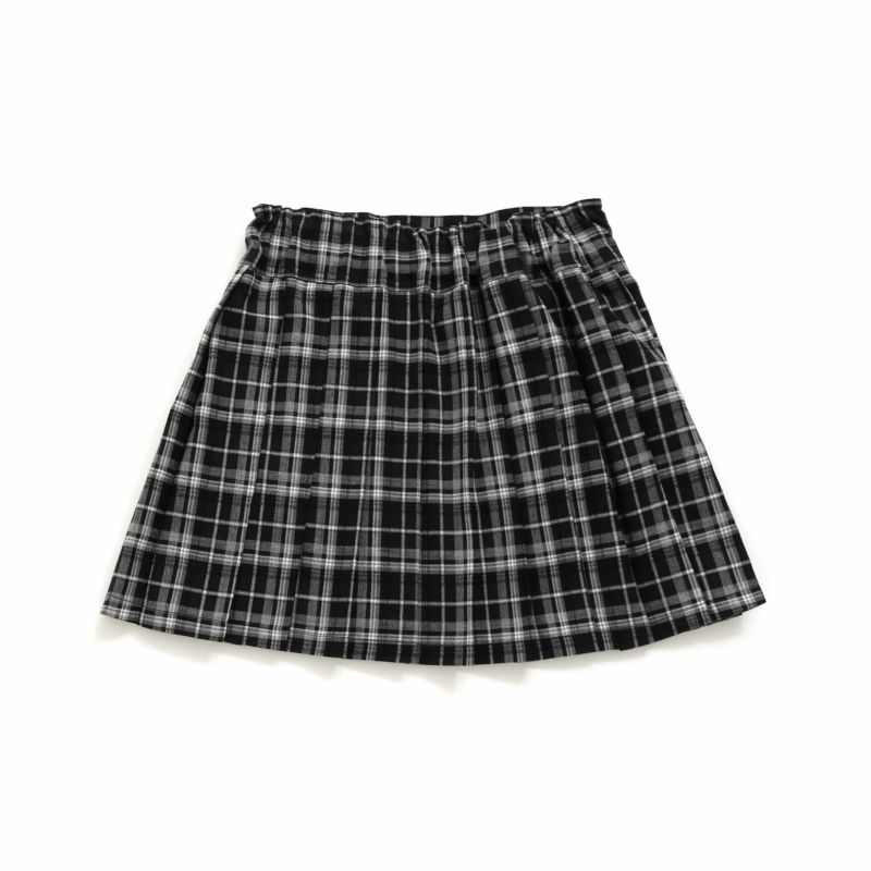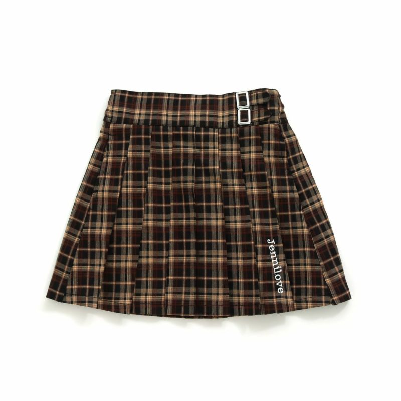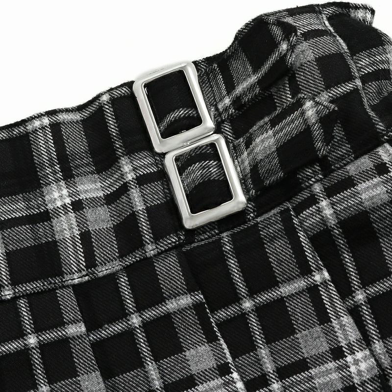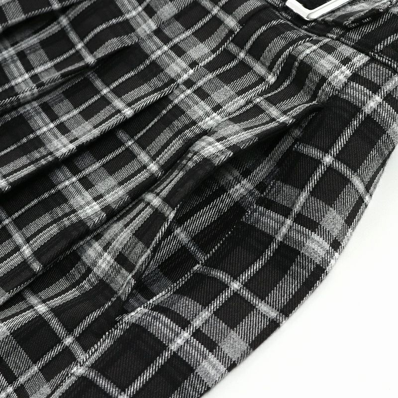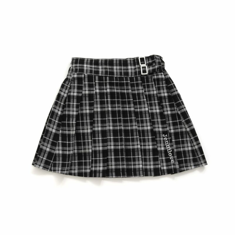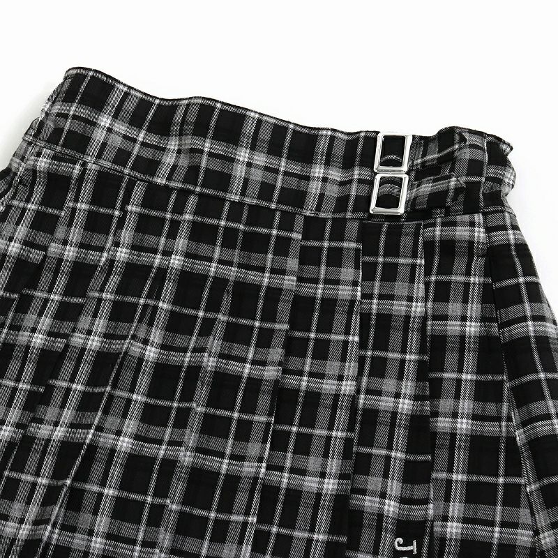 定番のチェック柄スカートはサイドのベルトがアクセント!