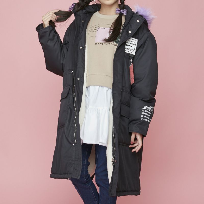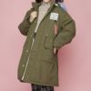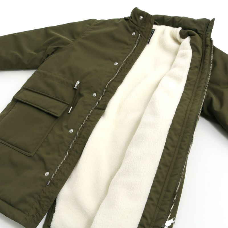 [素材]本体:ポリエステル100% 袖裏:ポリエステル100% ボア部分:ポリエステル100% ファー部分:アクリル100% リブ部分:ポリエステル70%、綿28%、ポリウレタン2% 中綿:ポリエステル100%