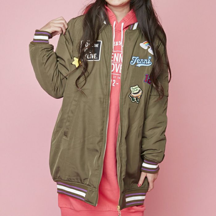 どんなコーデにも合わせやすく、散りばめられたワッペンがアクセントに。