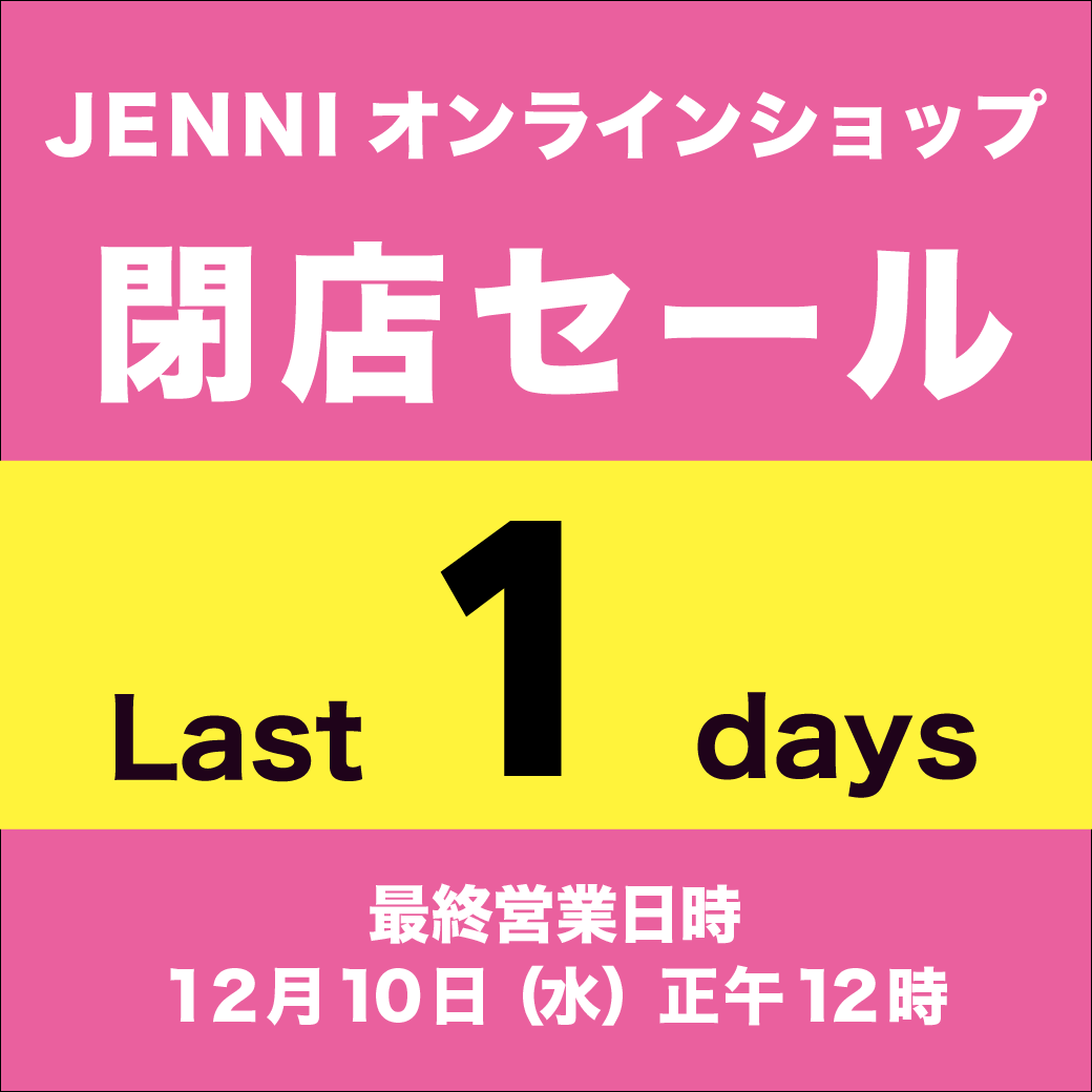 2025.12.08 【本日の正午12時閉店】感謝の30%OFFクーポン 2025.11.28 全品75%OFF以上! 2025.10.23 【JENNIオンラインショップ再稼働&閉店セール開催のお知らせ】 2024.12.13 2024-2025 JENNI Online Shop 年末年始休業のお知らせ 2024.10.25 【CATALOG】SISTER JENNI WINTER Vol.2 2024.10.24 サイズガイド 2024.10.11 【CATALOG】JENNI love WINTER Vol.1 2024.10.04 【CATALOG】SISTER JENNI WINTER Vol.1 2024.09.26 【CATALOG】SISTER JENNI 2024 AUTUMN 2024.09.21 【9/22(日)限定!最大20%OFF★】全品対象まとめ買い企画開催! 2024.09.06 【CATALOG】JENNI love 2024 AUTUMN 2024.08.16 【CATALOG】SISTER JENNI 2024 EARLY AUTUMN 2024.08.09 【CATALOG】JENNI love 2024 EARLY AUTUMN 2022.07.21 【オンラインショップ】お買い物ガイド 2021.09.25 LINE連携で便利にお買い物♪