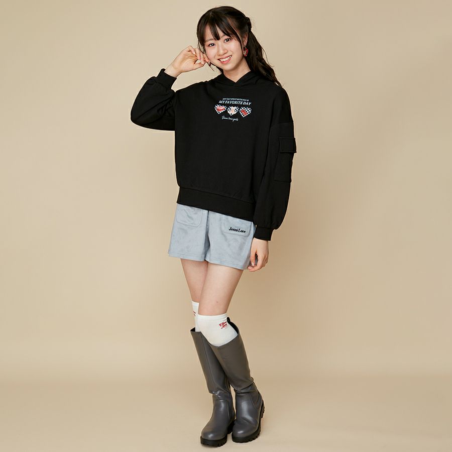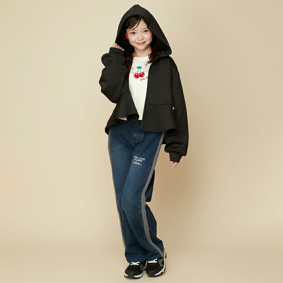 【74%off】裏起毛配色ステッチショート丈パーカー
