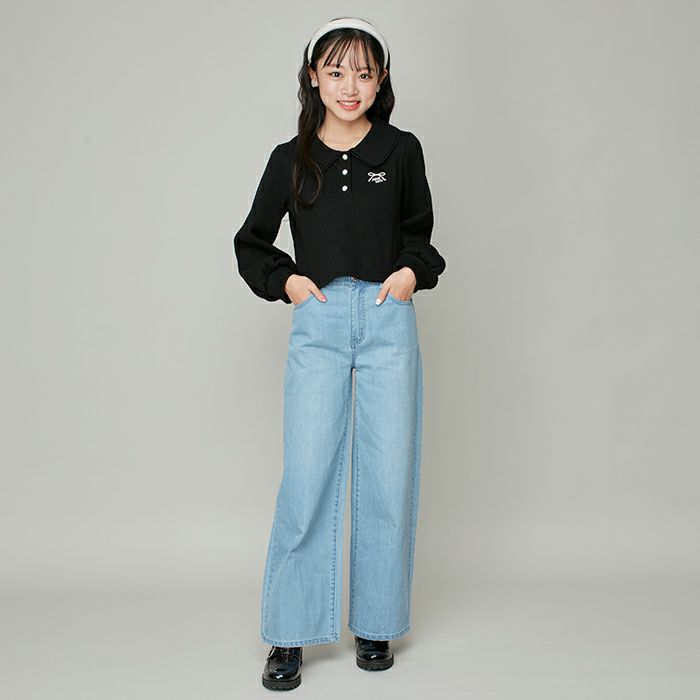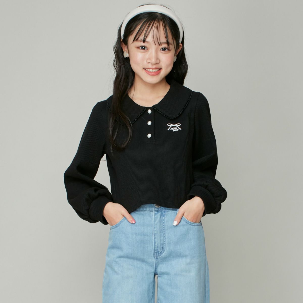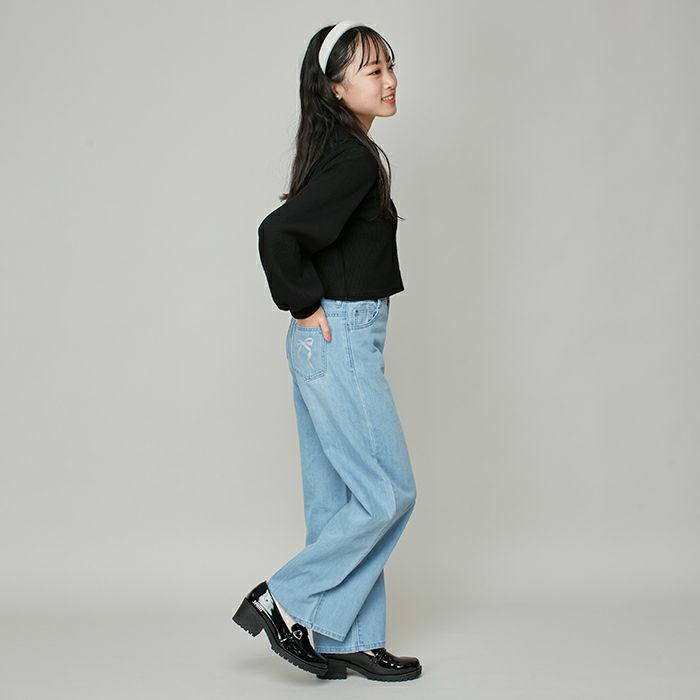 【60%off】リボンドロストフレンチロゴ短丈ロンT