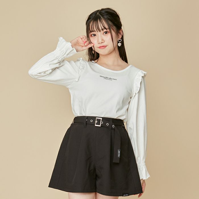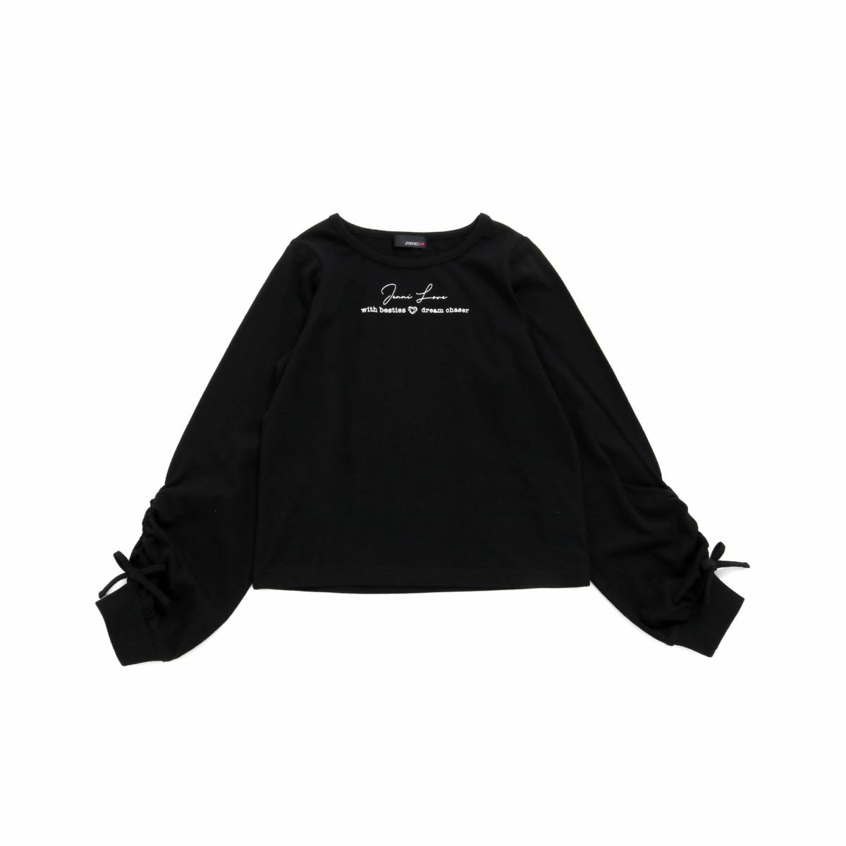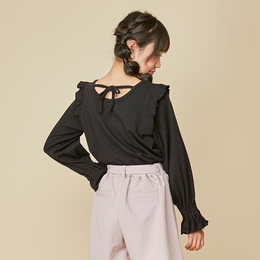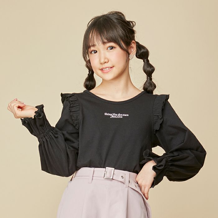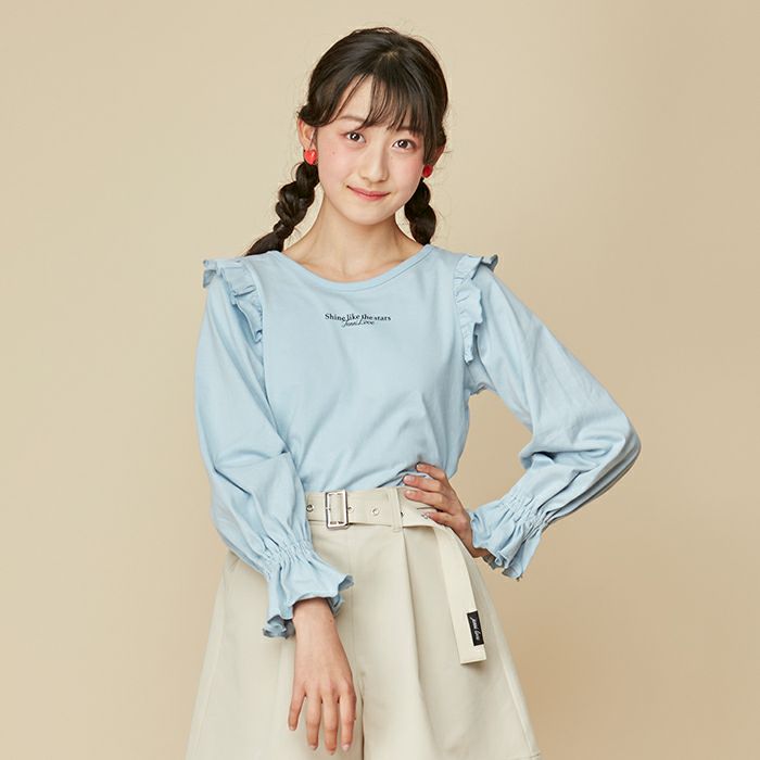 【65%off】スパンコール刺繍袖フリルTシャツ