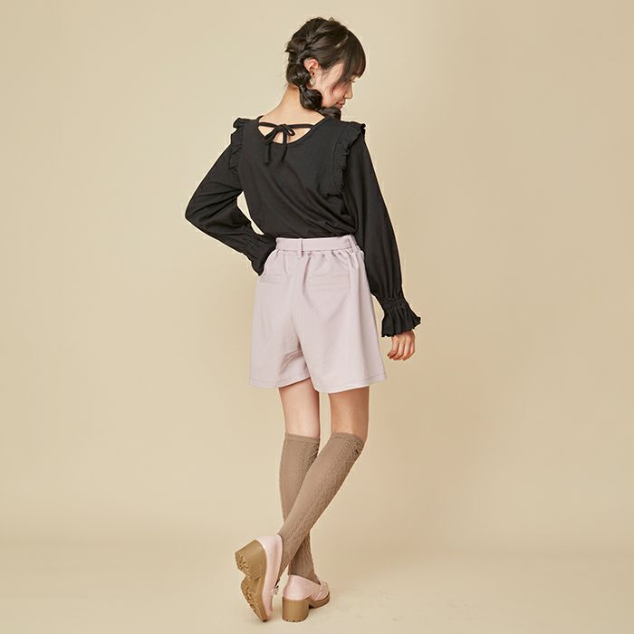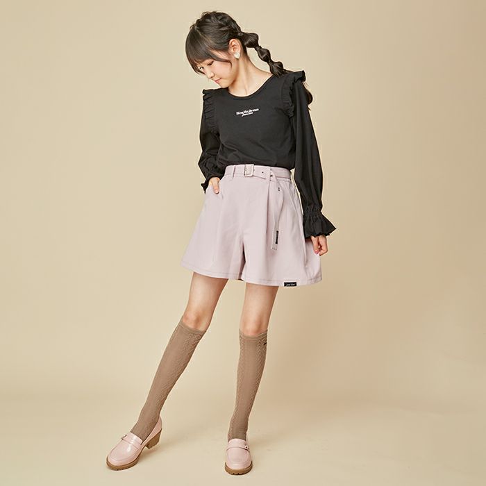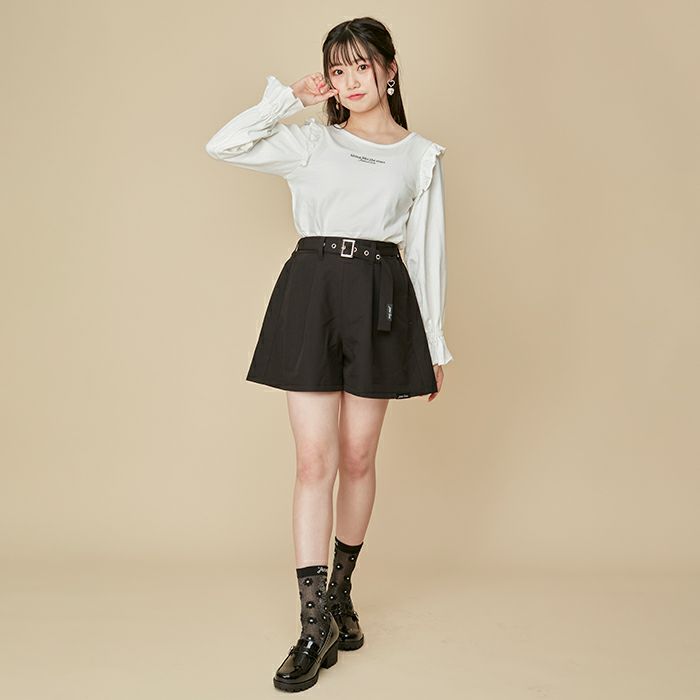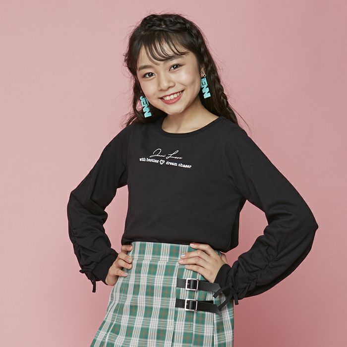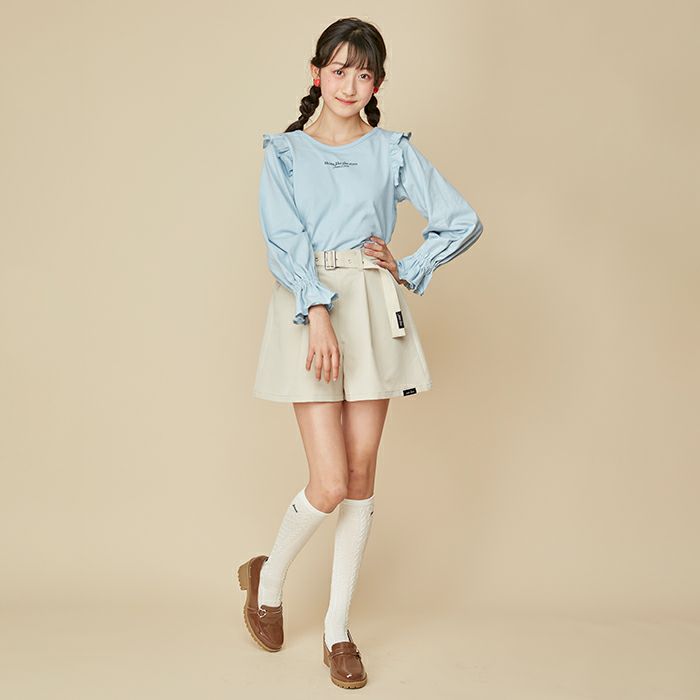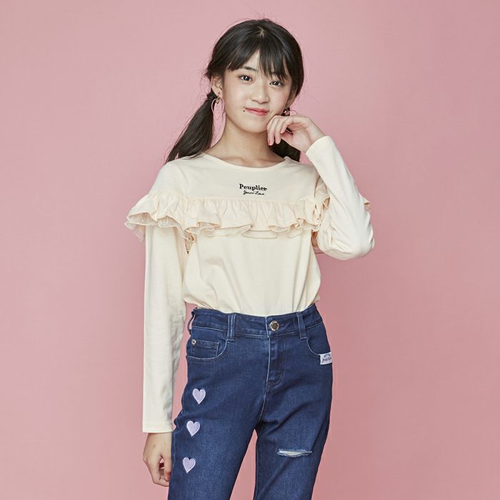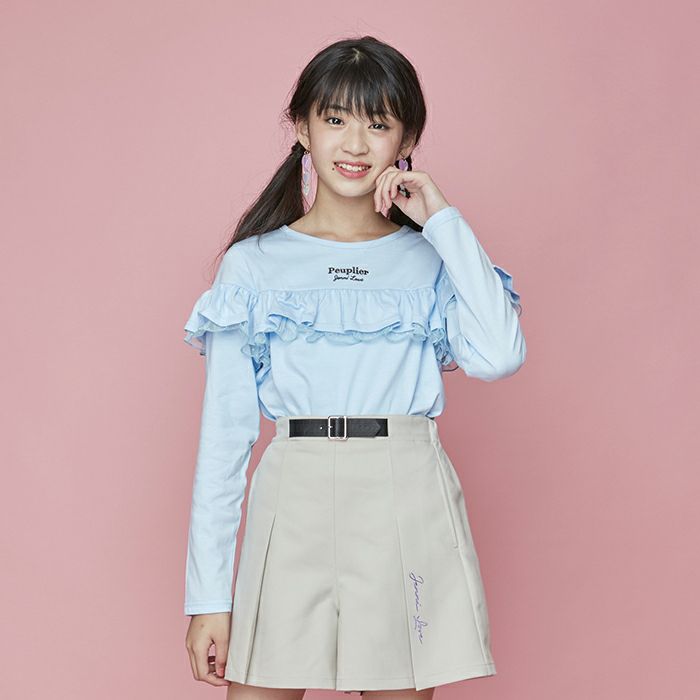 【65%off】スパンコール刺繍袖フリルTシャツ