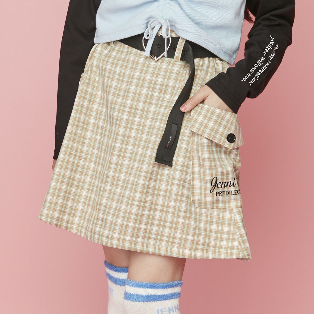 ベルト付きチェックスカパン